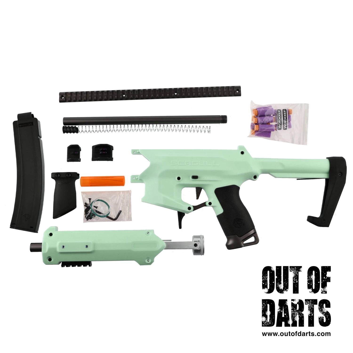 The Worker Seagull CQB Blaster is an ultra-compact, high-powered springer perfect for various game types. It’s a smaller sibling to the Worker Harrier, featuring a smaller plunger volume and minimized furniture with the same excellent build quality. Additionally, this blaster is highly customizable, with a threaded breech barrel system and a wide selection of springs. The Seagull is one of our most popular blasters and an excellent choice for newbies and veteran players alike!